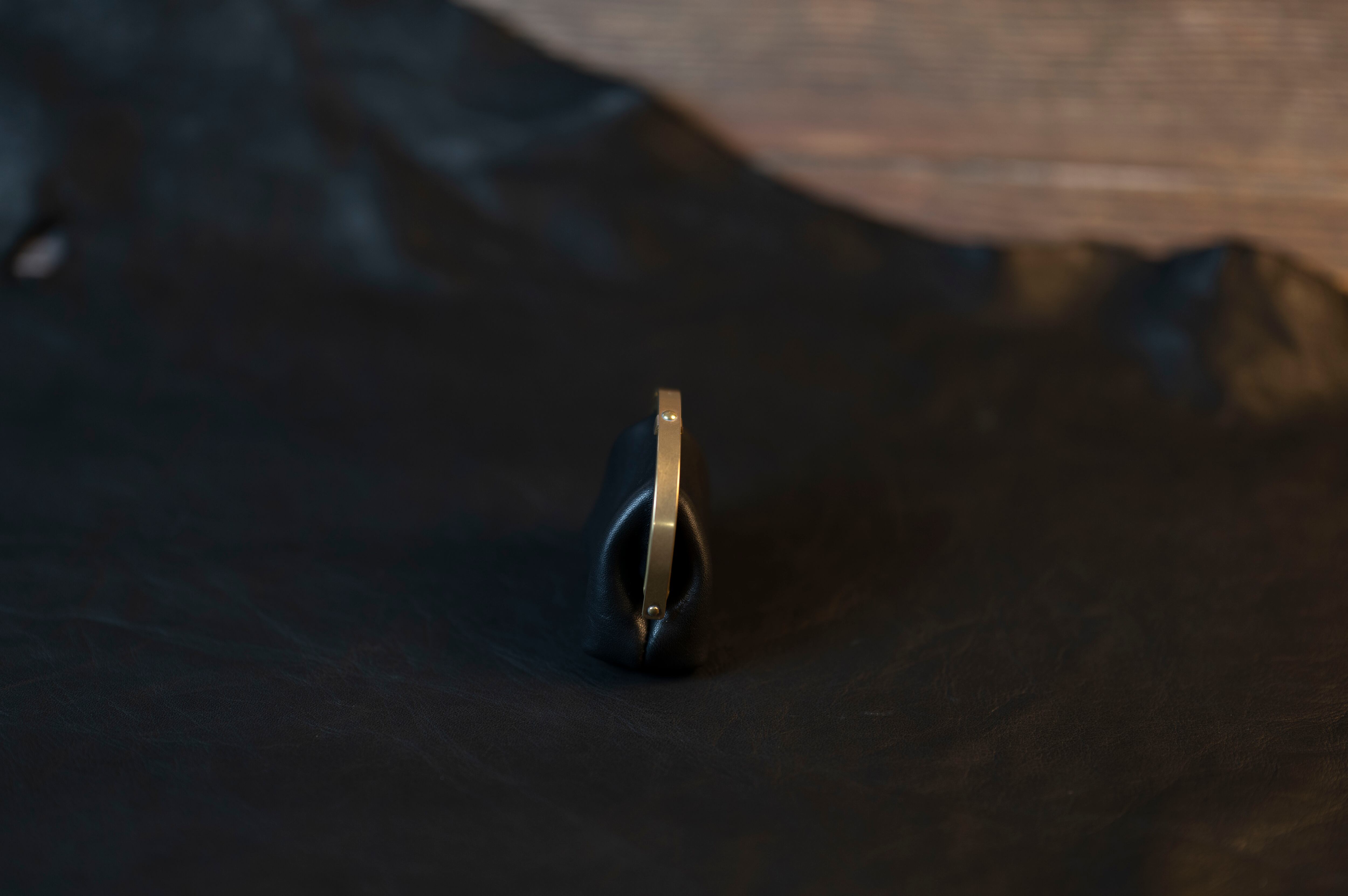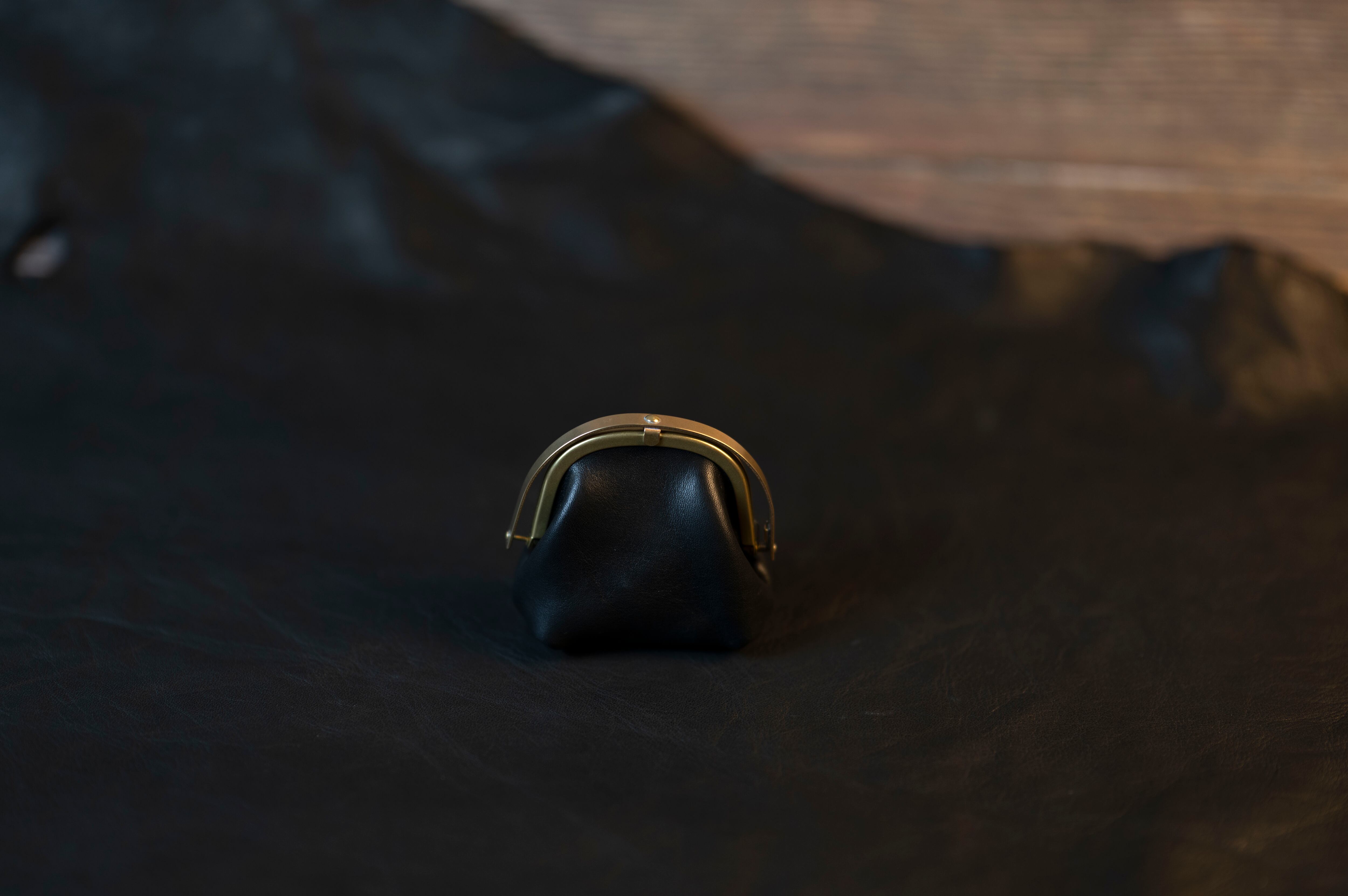 【soul;solid】Brass clasp シリーズ ”ワンタッチ真鍮がま口ミニポーチ” col.black #栃木レザー